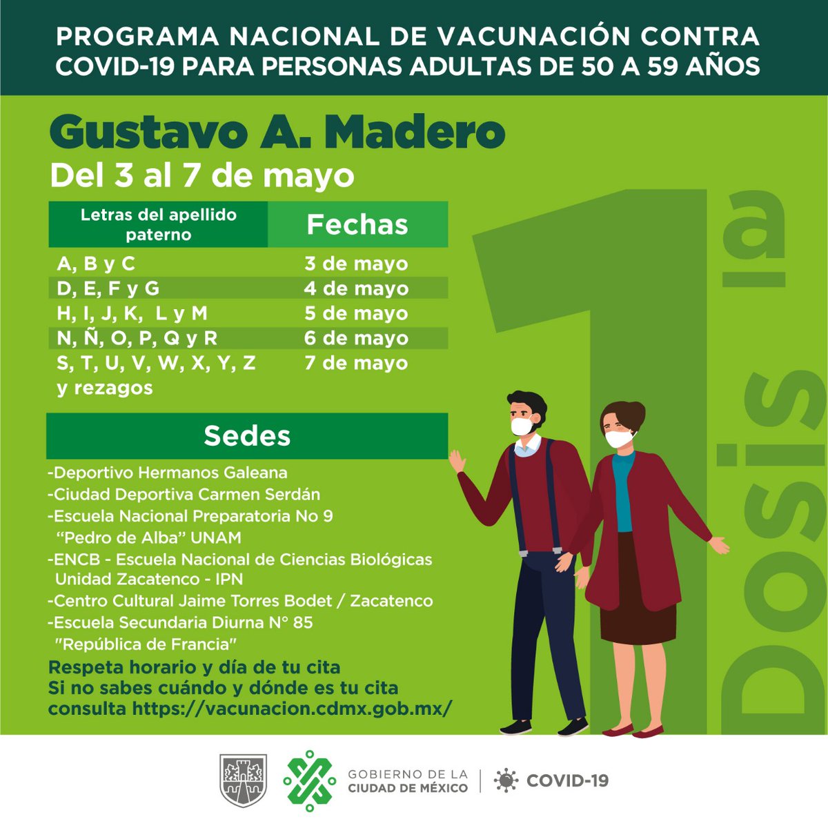 La cdmx vacunará a más de 500 mil personas en la jornada de vacunación a personas de 50 a 59 años del 25 al 29 de mayo.